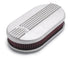 This new line of air cleaner #4117?was created to perfectly match our popular classic aluminum finned valve covers. Three models for single or dual-quads give you plenty of options for that "just right" look on any nostalgia rod or muscle car. Additionally, the small oval air cleaner provides adequate hood clearance in demanding applications as well as a coordinated appearance with the classic finned look. Our classic series air cleaners are available in either a classic polished aluminum or durable black powder coated finish. They come with medical grade, pre-oiled cotton gauze element for excellent filtration. These air cleaners work with all popular 5-1/8" necks, for all carburetors or throttle bodies.