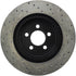 StopTech Drilled Sport Rotors are 1-piece direct replacement brake discs for factory brake systems and stock calipers that look great behind your wheels – and offer significantly improved braking performance. The unique cross-drilling aids with heat and brake dust dispersal, prevents glazing of the pads, adds bite and improves wet and dry braking performance. Built to last, the black e-coating provides protection from corrosion and the high carbon metallurgy (in most applications) offers quieter operation, better crack resistance and increased performance.