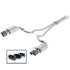 Ford Racing has partnered with industry leader Borla(R) Exhaust to offer the first in a series of Ford Racing by Borla(R) systems for the new 2015 Mustang. This cat-back system is constructed from ultra-smooth mandrel bent 300-series stainless steel tubing that is designed and fit to Ford Racing specs. This 2.5 in. cat-back exhaust system will give you an aggressive muscle car sound. This cat-back exhaust system with integral X-pipe bolts directly to the stock factory catalytic converters, making your Mustang 100% emission compliant. These tuned stainless steel mufflers with 4 in. chrome-plated stainless steel tips not only sound great but look great too.
