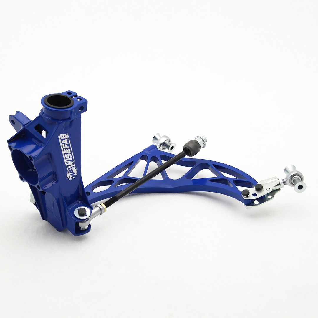 On Wisefab knuckle, joints are dropped, which brings the front RC up on lowered car, providing higher roll stiffness and letting to remove the front anti roll bar (sway bar) that is quite difficult to package with that high lock angles. -