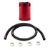 With years of oil catch can research and development, Mishimoto has created the most effective compact oil catch can on the market. The patent pending Mishimoto Compact Baffled Oil Catch Can was designed to separate oil particles from the PCV/CCV air that would normally have just been routed back to your intake. The internal air diverter increases air turbulence and ensures all the oil sinks to the bottom of the can, leaving nothing but clean air to pass through the 50-micron bronze filter to the intake. An internal baffle keeps the collected oil from splashing around under race conditions. This oil catch can features three ports, two inlets and one outlet, for easy installation on CCV and PCV systems.The 100-percent billet, 6061 aluminum can features M16 x 1.5 threads at the inlets, outlet, and drain area and includes three black anodized, CNC-machined aluminum fittings to make installation effortless. Our catch can is also sealed with Viton™ O-Rings to ensure all captured blow-by stays inside of the can. For maximum fitment options, the top mounting setup allows the can to be mounted from multiple angles. To make maintenance easy, the drain plug can be removed to allow for a return to the oil pan. The can is also 100-percent washable, unlike many other cans that require you to replace your filtration system.Our catch cans are different from most air-oil-separator (AOS) systems on a few levels. First, our catch cans are not heated. This means that all of the blow-by is able to condense in the can, including low-octane oil vapors and contaminated fuel vapors. Most AOS systems also drain the blow-by back into the oil pan, while our catch cans trap the blow-by and keep it out of the engine permanently. If you’ve seen what we’ve seen in the bottom of our catch cans, you won’t want that draining back into your oil either.