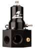 Specifically designed for carbureted street or racing engines on gasoline, the SS-Series adjustable regulator offers higher flow, quicker response and less pressure creep than competing two-port designs. Popular in circle track applications up to and including NASCAR? level horsepower and as a dedicated nitrous regulator. Adjustable from 5-10 PSI. P/N 13201 provides ORB-06 inlet and outlet ports. 1/8' NPT gauge port. Regulator re-seats when the needle and seat closes, preventing pressure creep. Includes mounting bracket. Not rated for alcohol fuels, ethanol or methanol.