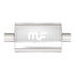The MagnaFlow 4 X 9in. Oval Straight-Through Performance Exhaust Muffler 11216 is engineered to enhance your ride with a healthy helping of our signature exhaust sound and dyno-proven performance thanks to its free-flowing straight-through perforated stainless steel core wrapped in stainless steel mesh and acoustic fiber fill. The reversible, universal 2.5/2.5in. diameter inlet/outlet Straight-Through layout allows you to install it in whatever orientation and configuration you see fit. However, professional installation is highly recommended. Muffler 11216s weight-optimized 4x9x14in. oval-shaped body features a satin finish that elevates the overall aesthetics of your current exhaust setup. 11216 is made of durable, corrosion resistant stainless steel and produced using cutting-edge CNC precision robotic manufacturing techniques, all backed by MagnaFlow's limited lifetime construction warranty.