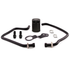 The legendary Ford Bronco has returned, and under the retro-styled hood lies a new legend: the 2.7L EcoBoost. The 2.7L EcoBoost has been powering Fords for nearly a decade and has become one of the most respected truck engines available. The second generation 2.7L features both port and direct injection for efficiency throughout the RPM range. While the added port injection helps clean the intake valves, it doesn't protect the rest of your engine from the effects of blow-by. As blow-by flows through your intake, it coats components like sensors and your intercooler in a sludge of oil, carbon, and fuel, reducing their ability to function. Blow-by can also reduce the effectiveness of your engine oil. The factory air-oil-separator drains blow-by back into the oil pan, which is great for the environment, but the fuel and water in blow-by can thin your engine oil and reduce its effectiveness. Finally, any blow-by that does make its way back into the cylinder can reduce the effective octane of your fuel and, for a high-strung turbocharged engine like the 2.7L EcoBoost, lower octane means less power. The solution to all of those issues is to capture the blow-by and keep it out of the engine with a Mishimoto catch can. Our direct-fit baffled oil catch can kit for the 2021+ Ford Bronco 2.7L EcoBoost uses custom-molded hoses to intercept blow-by before it enters the intake and captures it to be recycled at your next oil change. Our catch can features an internal baffle and air turbulators that help condense oil, fuel, and water vapor from the blow-by, as well as a 50-micron sintered bronze filter that captures carbon particles. Our catch can is mounted away from engine vibration with a sturdy 2.5mm-thick steel bracket and our molded hoses include Ford-specific quick-disconnect fittings for an easy and clean install. Like all our Ford Bronco products, this catch can kit is backed by our Mishimoto Lifetime Warranty for a lifetime of clean running.