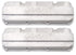The Edelbrock #4275 Elite II Valve Covers are designed for Chevy Big-Block V8 1965 & Later applications. This new line of Elite II valve covers feature a design that is influenced by the original Elite Series originally released in 1985, but with a new modern take on this classic look. They're made from heavy-gauge, die-cast aluminum and are finished off with a show quality high luster polished finish. The raised fins are accented by a contrast gloss black finish between the fins for the definitive Elite Series look. Our tall profile valve covers are 2" taller than stock, and clear most roller rockers and valvetrain components. Our low profile valve covers clear all air-conditioning, alternator brackets and aluminum rockers. Overall height is measured from gasket flange to top at the highest point.