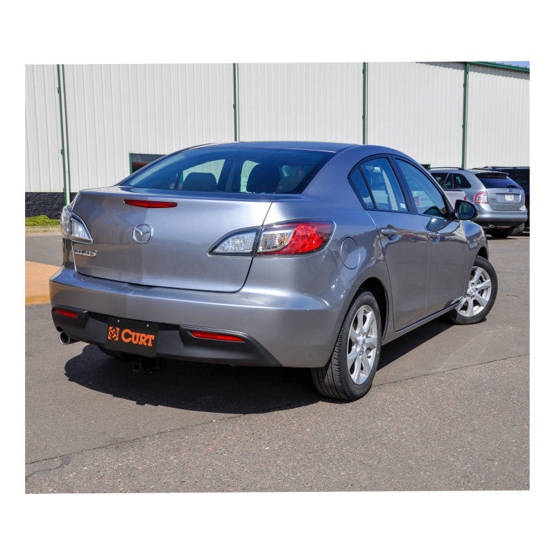 Connect to your lifestyle with a custom hitch receiver from CURT. All of our custom hitches are designed for a vehicle-specific fit, manufactured with pride, finished for industry-leading rust resistance and tested to rigorous SAE J684 standards for safety. This class 1 trailer hitch and ball mount combination is designed for a custom fit on select years of the Mazda 3 (see application info to verify fitment). The hitch integrates with the vehicle's frame and provides a useful and dependable 1-1/4" x 1-1/4" receiver. The receiver is perfect for attaching the included ball mount and towing a small trailer, or for adding cargo space with a hitch-mounted cargo carrier, bike rack or other accessory. This particular class 1 hitch is rated for 2,000 pounds gross trailer weight and 200 pounds tongue weight (never exceed the lowest-rated towing component). The ball mount included with this trailer hitch quickly and easily installs into the hitch receiver and has a 3/4" trailer ball hole (trailer ball not included). It can be mounted in the rise or drop position to promote level towing. Like all CURT custom hitches, this class 1 hitch is protected with our co-cured finishing process. It is descaled for a smooth surface, immersed in liquid Bonderite for rust resistance inside and out, covered with a durable black powder coat and finally co-cured for an industry-leading rust, chip and UV-resistant shield. No matter where you're headed or which season of the year youre towing in, this CURT hitch is equipped for long-lasting resilience to the elements. It features an open-back receiver for easy cleaning, and it comes with all the hardware necessary for the installation.